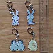 うさぎ、皇帝ペンギン、ひよこのアクリルキーホルダーです。